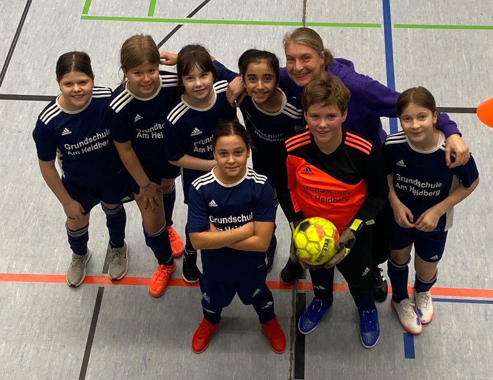 Die Mädels hatten am Donnerstag 11 Punkte aus 5 Spielen auf ihrem Konto und konnten sehr souverän in die nächste Runde einziehen. Es war eine geschlossenen Teamleistung mit einer tollen Kapitänin Emma aus der 4a im Tor, die kein einziges Gegentor hinnehmen musste. Am Ende war nur die eigene Stadtteilschule an diesem Tage noch besser.