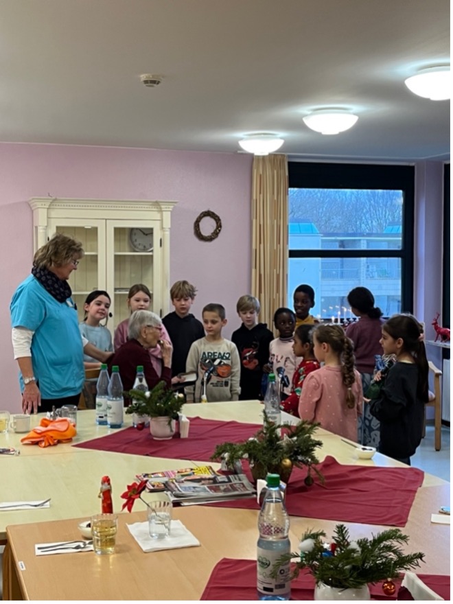 Nach ein paar einleitenden Worten ihrer Lehrerin durften die Kinder endlich ihr Gedicht vortragen, das sie in den letzten Wochen fleißig geübt hatten. Anschließend sangen sie schöne Weihnachtslieder, bei denen einige Bewohner sogar mitsangen.